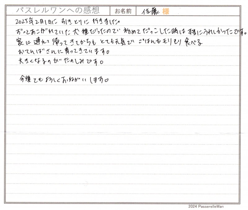 ■店長コメント 神奈川県の佐藤様 、 お名前:アウラちゃん