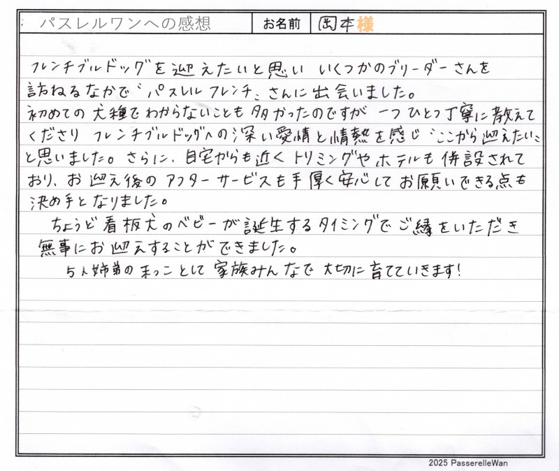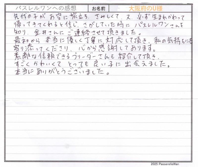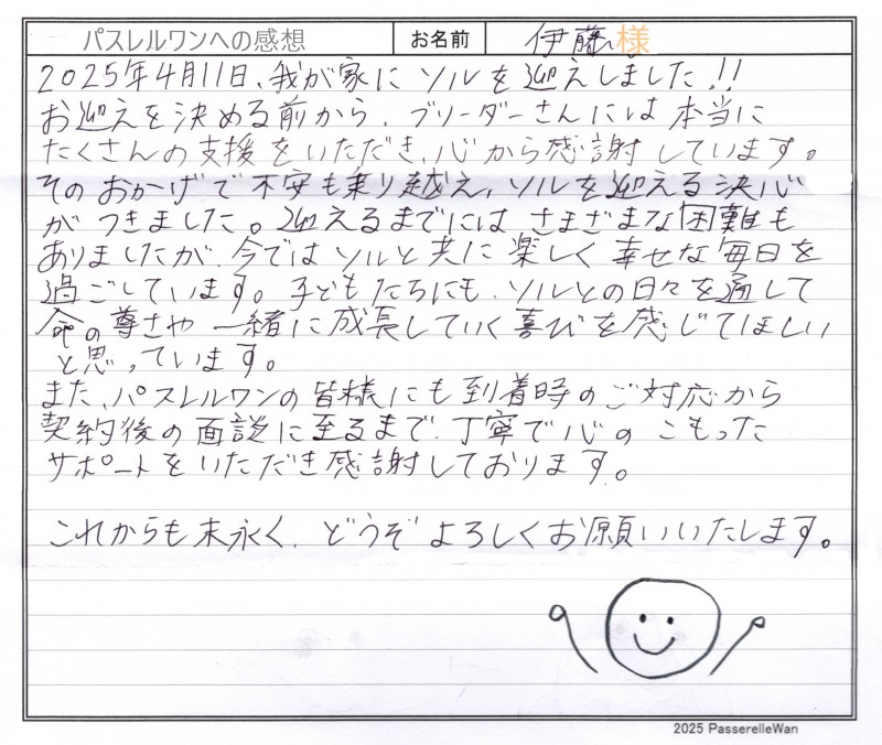「お迎えした後も、何かあればご連絡ください。」と言っていただけて、すごく頼りになりますし、一人で抱え込まなくていいという安心感があります。