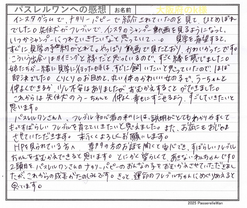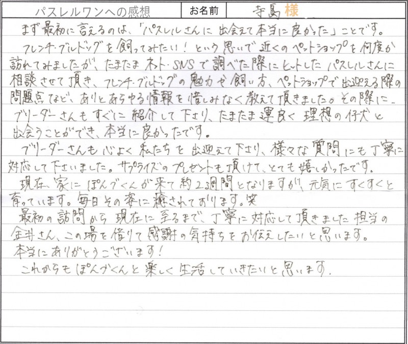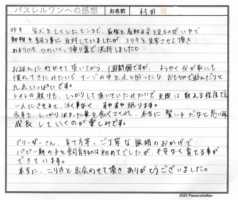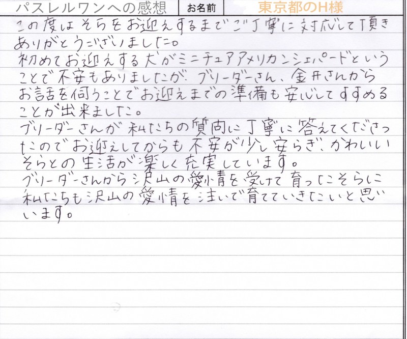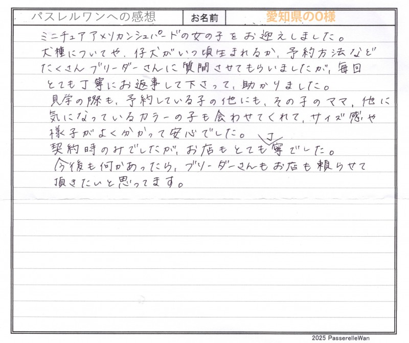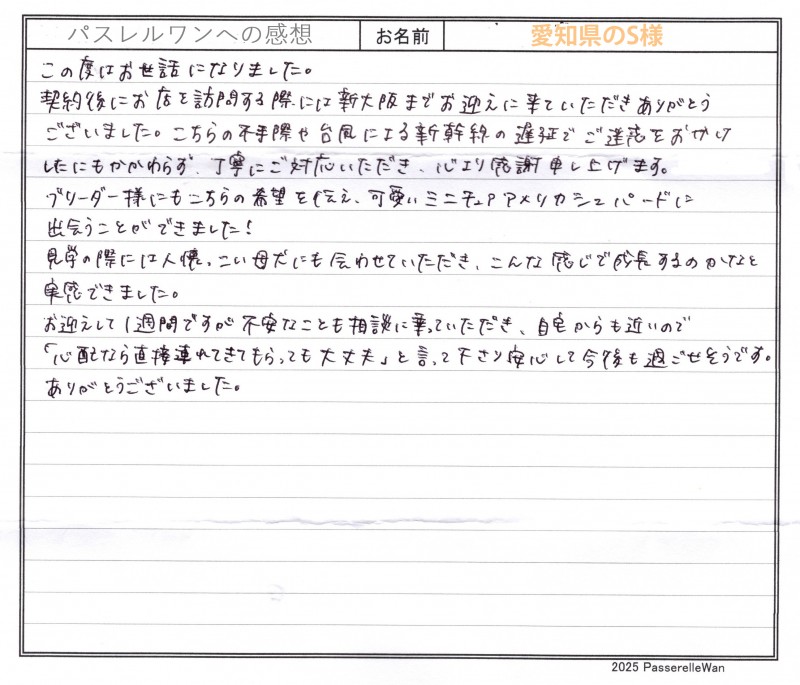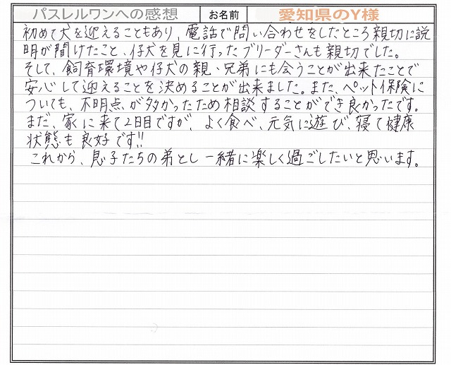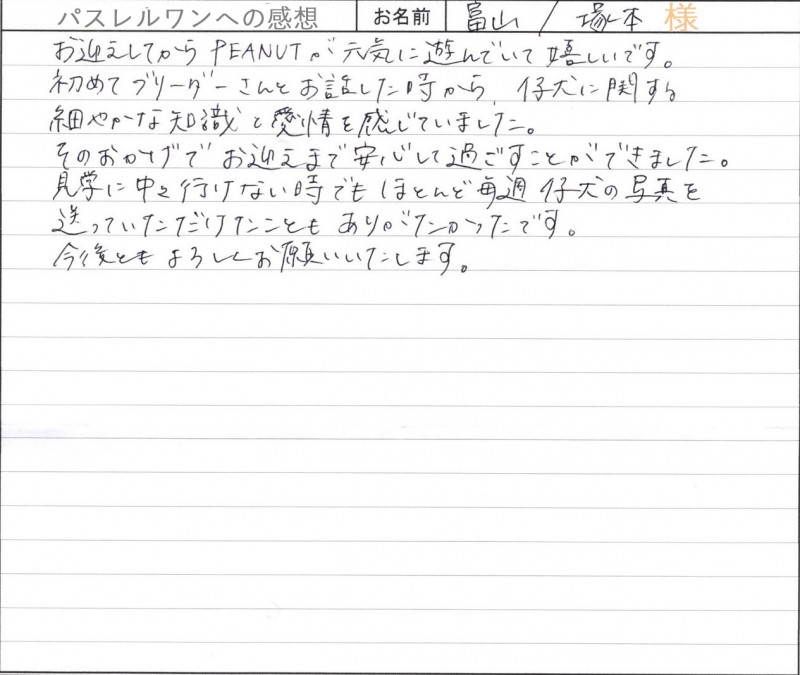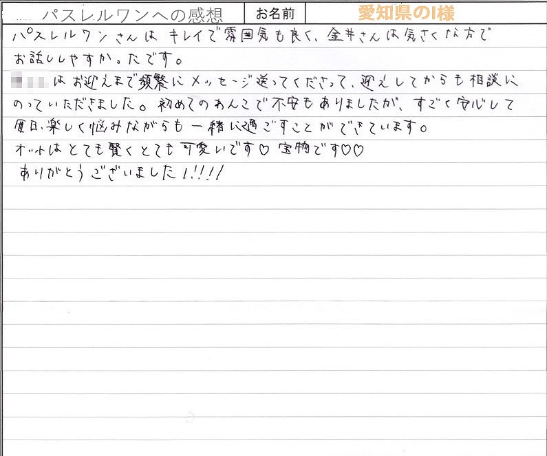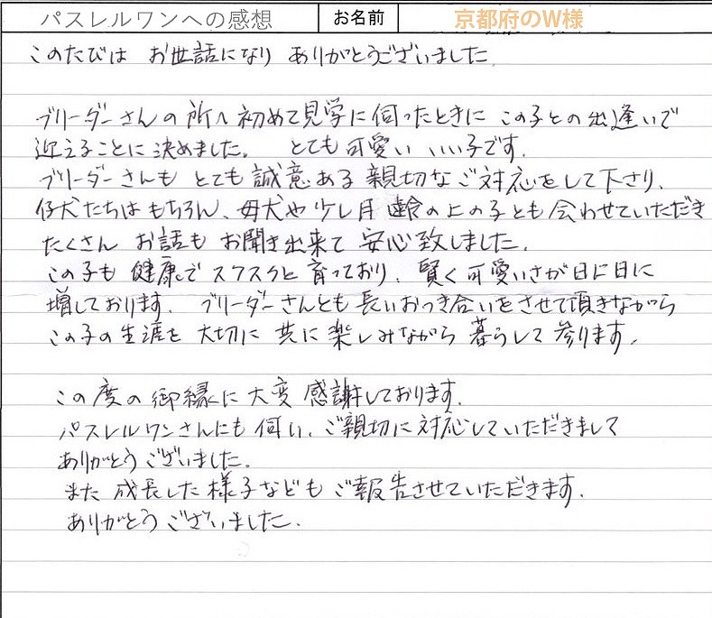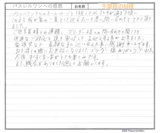 ブリーダーさんがとても丁寧に何でも相談に乗ってくださり・・・