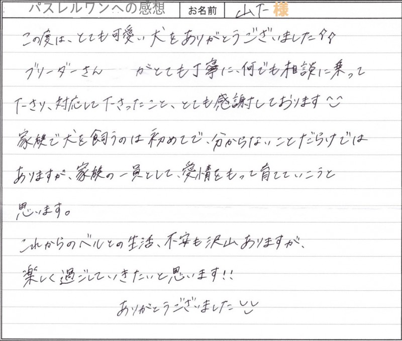 ■店長コメント 徳島県の山下様 、 お名前:ベルちゃん