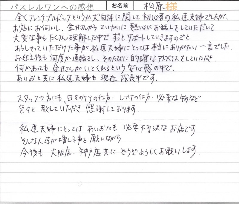 ■店長コメント 愛知県のS様 、 お名前:フィンくん