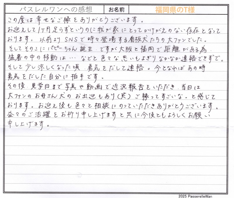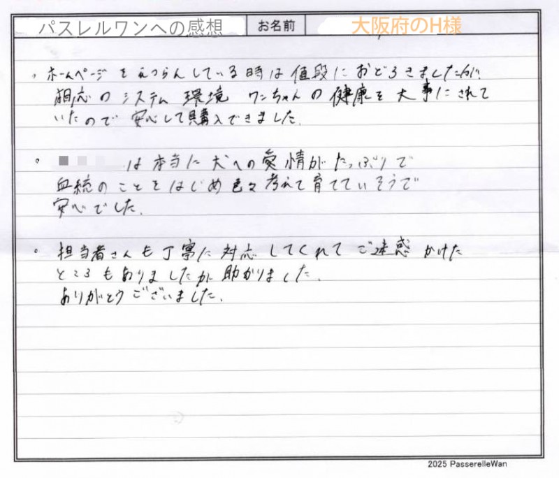 ■店長コメント 京都府のw様 、 お名前:リーガちゃん
