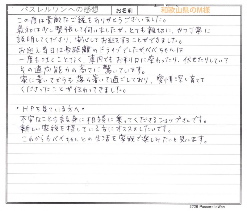 ■店長コメント 和歌山県のM様 、 お名前:べべちゃん