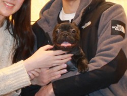 東京都より三重県提携犬舎へご見学の上、良縁を頂戴しご一緒にお連れ帰り頂きました。 フレンチブルドッグの飼育経験をお持ちの大のファンシャー様です^^ ブリーダーさんとも、フレンチブルドッグ談話に花が咲いたようで大変嬉しく思います^^ ブリーダーさんもこだわり派のご家族様に大変喜んで頂けて、今後の励みとなっております☆ どうぞ、素敵なフレンチブルドッグライフをお送りください・・・☆★☆ この度は当店をご利用いただき誠にありがとうございます。