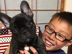 岐阜県犬舎までご見学、お迎えと2度お越し頂きました。 ご見学の際は、その日を楽しみにされていた息子様も若犬になるペロ君をとても気に入って頂けたようで大変安心致しました。 お迎えの日が体調最優先の面で少し遅れてしまいご迷惑をお掛け致しましたが快くご理解下さり当方ブリーダーさん共に感謝しております。 新たな環境のもと少しトイレトレーニングに悪戦苦闘が続いておりますが、ご家族様の広い温かい愛情のもと焦らず根気よく躾を行ってまいりましょう!今後もケースバイケースでアドバイスさせて頂きますのでお気軽にお問い合わせ・ご相談ください。 今後もペロ君と素敵なフレンチブルドッグライフをお送りください・・・☆★☆ この度は当店をご利用いただき誠にありがとうございます。