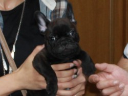 なかなか新しい家族の一員との出逢いに恵まれずにいた中当方へお問い合わせくださいました。 フレンチブルドッグに対するこだわりも強く、お迎えの日をとても楽しみにお待ちくださいました☆ お迎えの際は東京駅でお引き渡しさせて頂き、対面説明の中、行き交う通行人の方々が『可愛い、可愛い!』と皆立ち止まっていましたね^^ 銀次郎君はドッグショーにチャレンジさせても期待できるほどの逸材です。是非たくましく育て上げてください♪ 今後も困ったことがございましたらいつでもご相談ください! このたびは当店をご利用いただき誠にありがとうございました。