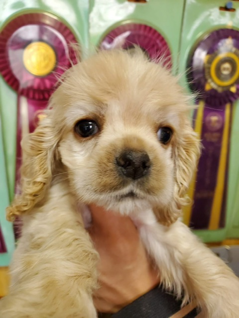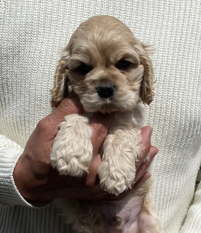 アメリカンコッカースパニエル名門犬舎 父チャンピオン犬! 紫リボン ■血統 父犬・・・◎JKCチャンピオン 毛色:バフ 母犬・・・◎外産チャンピオン直娘 毛色:バフ ◎マイクロチップ装着費用、初回ワクチン、血統書発行費用、消費税込(送料別) |
