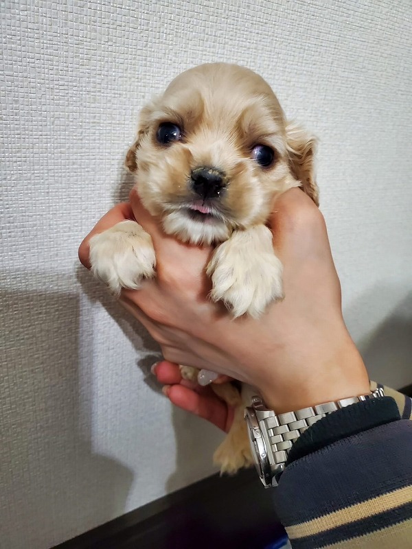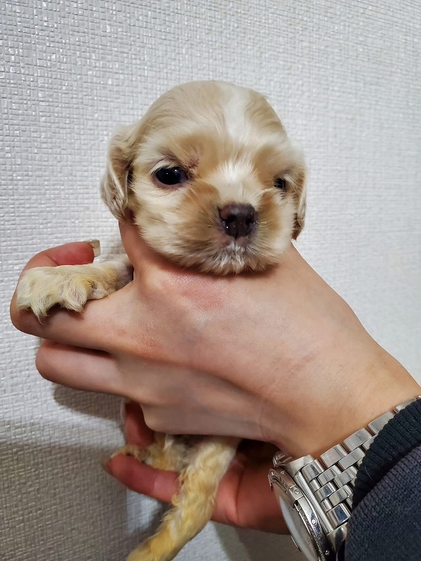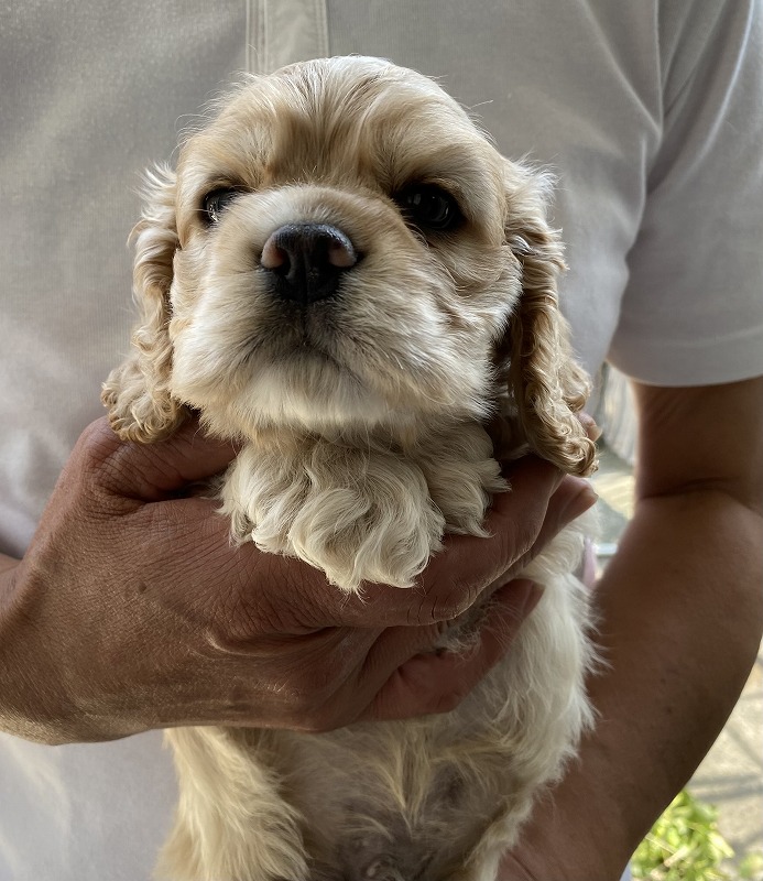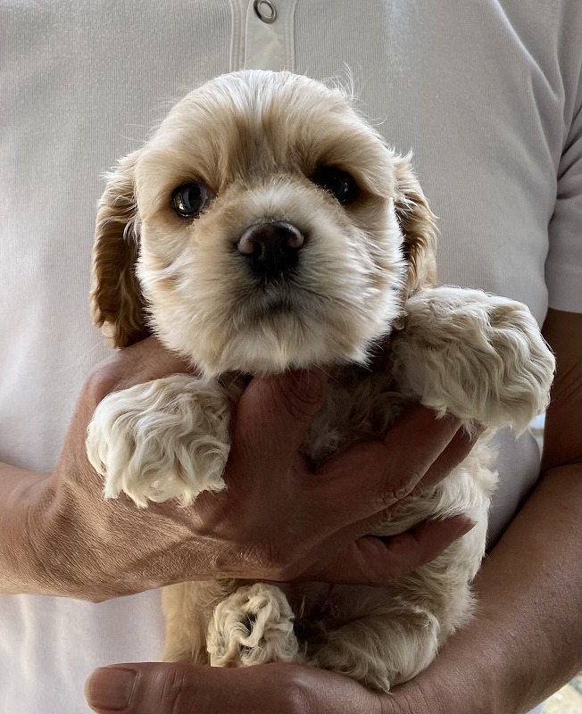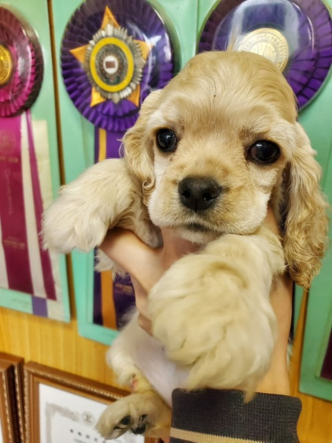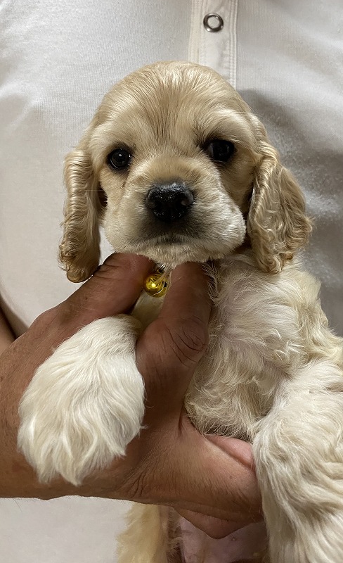 アメリカンコッカースパニエル名門犬舎 父チャンピオン犬! 黄色リボン ■血統 父犬・・・◎JKCチャンピオン 毛色:バフ 母犬・・・◎外産チャンピオン直娘 毛色:バフ ◎マイクロチップ装着費用、初回ワクチン、血統書発行費用、消費税込(送料別) |