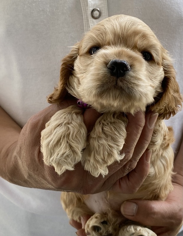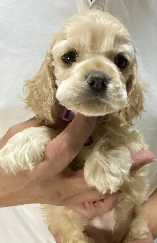 アメリカンコッカースパニエル専門 紫リボン ■血統 母犬・・・毛色:バフ 父犬・・・毛色:バフ 両親共に優良血統 ◎マイクロチップ装着費用、初回ワクチン、血統書発行費用、消費税込 |