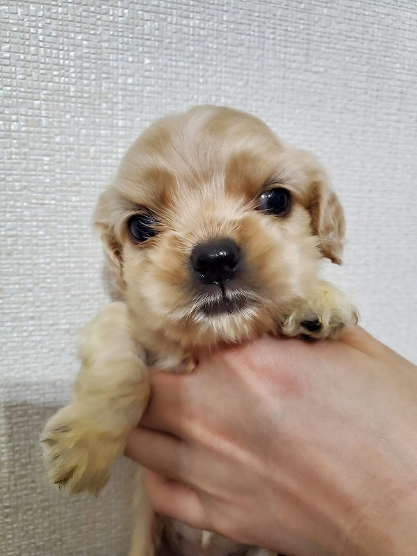 アメリカンコッカースパニエル名門犬舎 父チャンピオン犬! 茶色リボン ■血統 父犬・・・◎JKCチャンピオン 毛色:バフ 母犬・・・◎外産チャンピオン直娘 毛色:バフ ◎マイクロチップ装着費用、初回ワクチン、血統書発行費用、消費税込(送料別) |