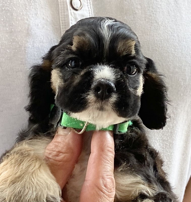 アメリカンコッカースパニエル専門 緑リボン ■血統 母犬・・・毛色:ブラックタン 父犬・・・◎JKCチャンピオン直子 毛色:バフ 両親共に優良家族構成 ◎マイクロチップ装着費用、初回ワクチン、血統書発行費用、消費税込み |