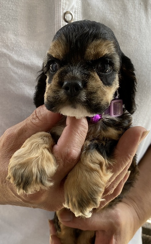 アメリカンコッカースパニエル専門 紫リボン ■血統 両親共に優良血統 母犬・・・バフ 父犬・・・ブラックタン 初回ワクチン費用、血統書発行費用、マイクロチップ装置費用、健康診断込み(送料別) |