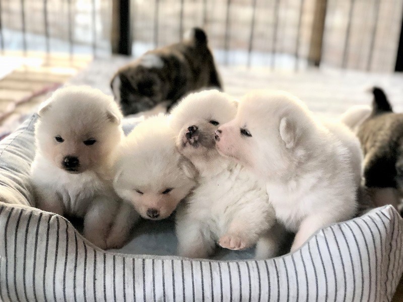 3月1日に、7頭兄妹で生まれました。 男の子3頭のご家族様を募集いたします。 元気いっぱいミルクを飲み、すくすく成長中です! ◎優先登録をお勧めいたします☆ |