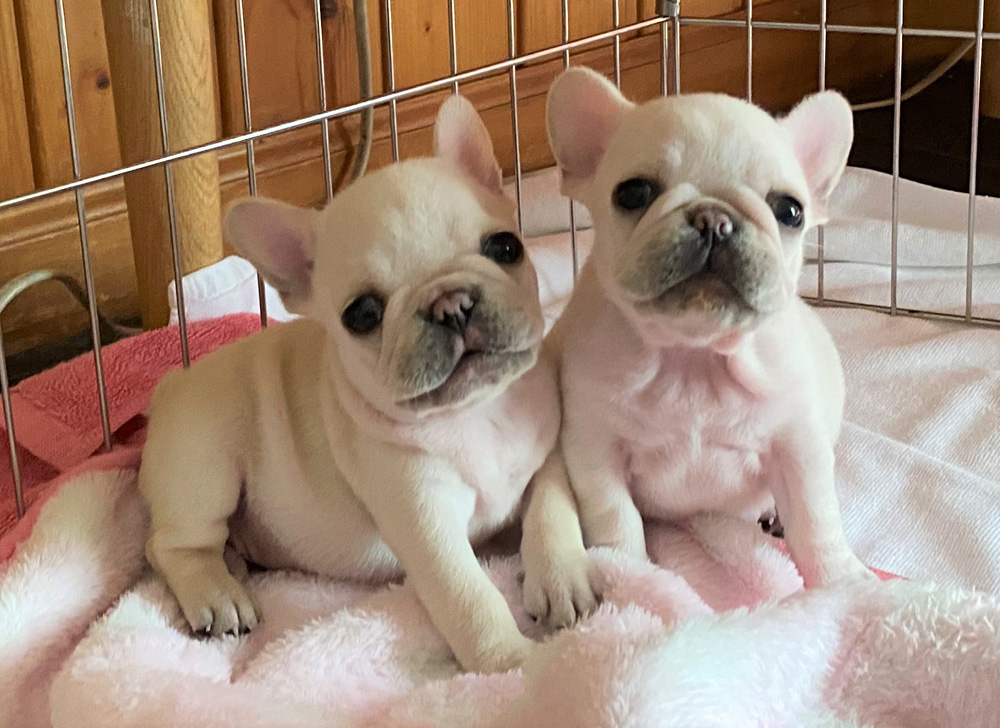 フレンチブルドッグ専門 4頭兄妹(ブリンドル男の子、ブリンドル女の子、パイド男の子、パイド(フォーン)女の子) 父犬・・・◎JKCチャンピオン直子、インターチャンピオン孫 毛色:パイド 母犬・・・◎JKCチャンピオン直子 毛色:ブリンドル ◎優先登録をお受付いたします。大変人気のブリーダーさんです。 |
