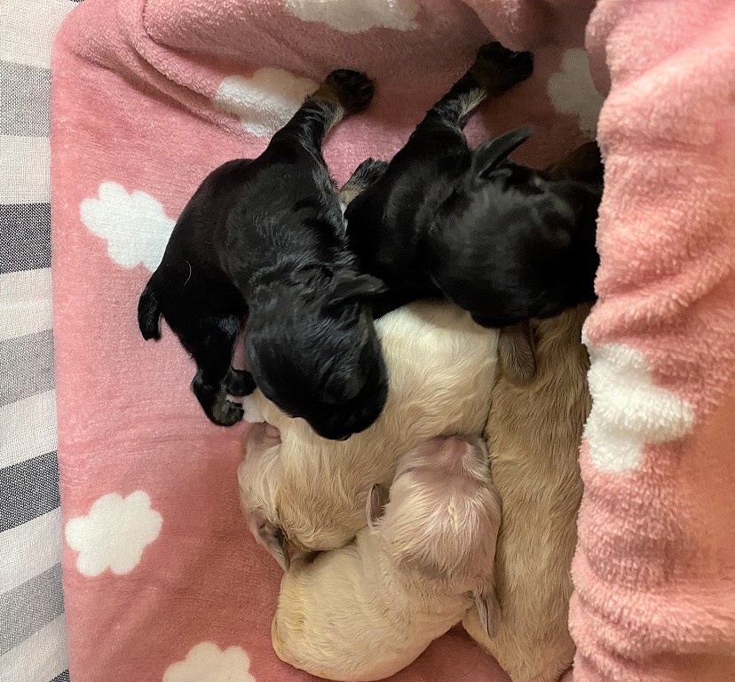 アメリカンコッカースパニエル専門 ■血統 ◎両親共に良血統・遺伝子検査クリア 父犬・・・JKCチャンピオン直子 毛色:ブラックタン 体重:10キロ 母犬・・・毛色:ブラック 体重:7キロ 3頭姉妹で産まれてまいりました☆ ブラック&タン 女の子1頭 バフ 女の子2頭 ◎大変人気の犬舎様です。優先登録をお薦めいたします。 |