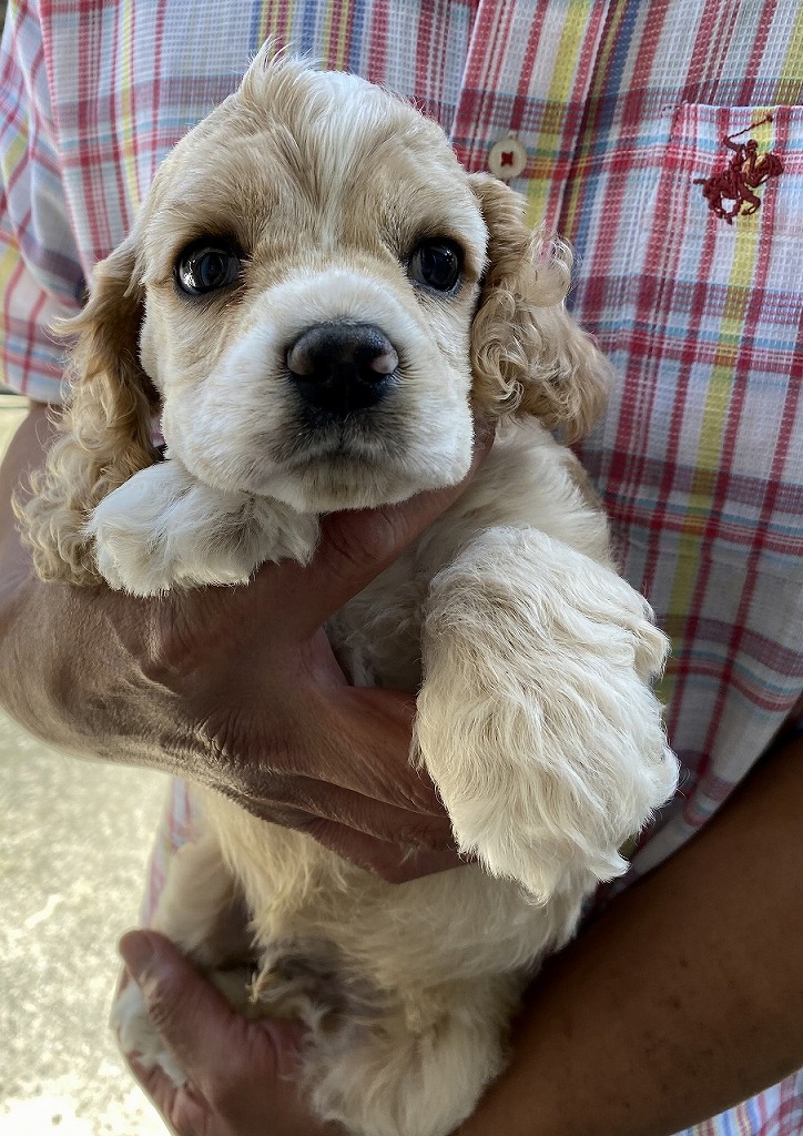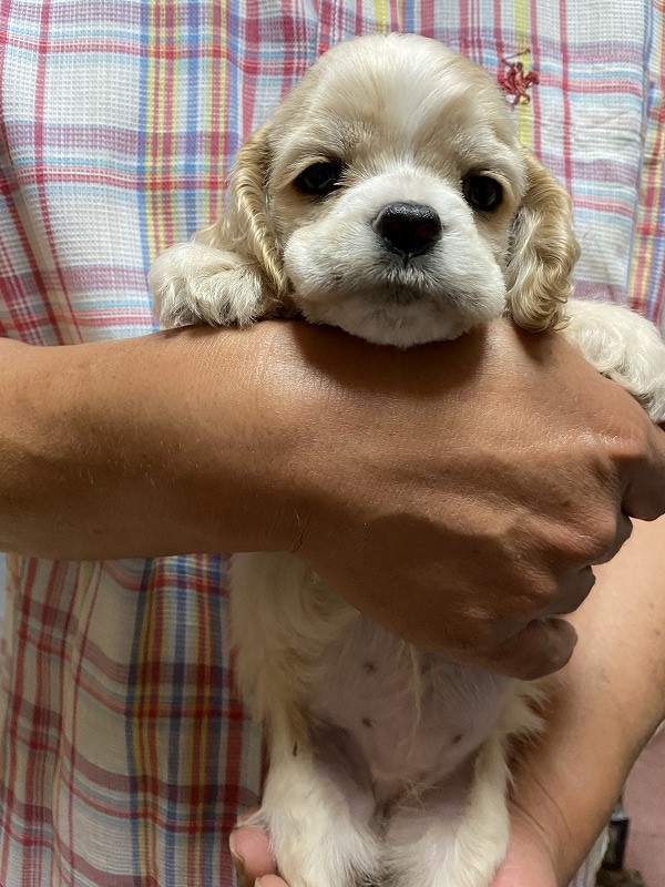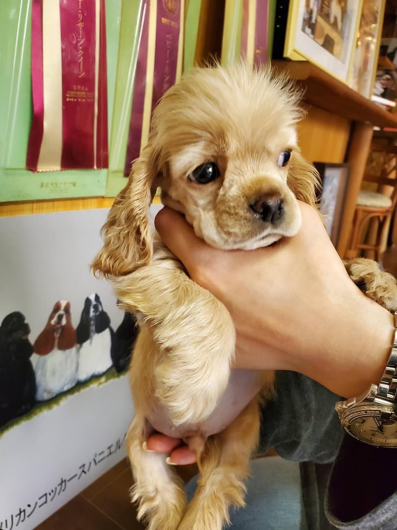 父チャンピオン犬! アメリカンコッカースパニエル専門 緑リボン ■血統 父犬・・・◎JKCチャンピオン 毛色:バフ 母犬・・・◎外産チャンピオン直娘 毛色:バフ ◎初回ワクチン・血統書発行費用・マイクロチップ装着費用・消費税込み(送料別) |