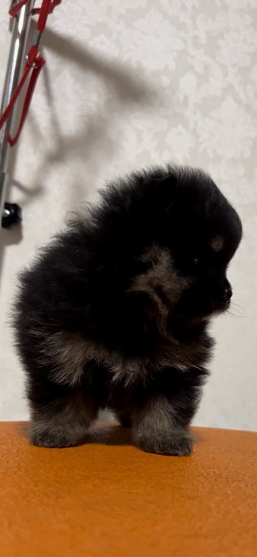 お待たせしました!優良血統、ポメラニアン、ブラック&タン男の子の登場です。