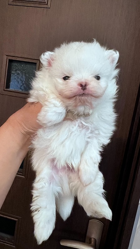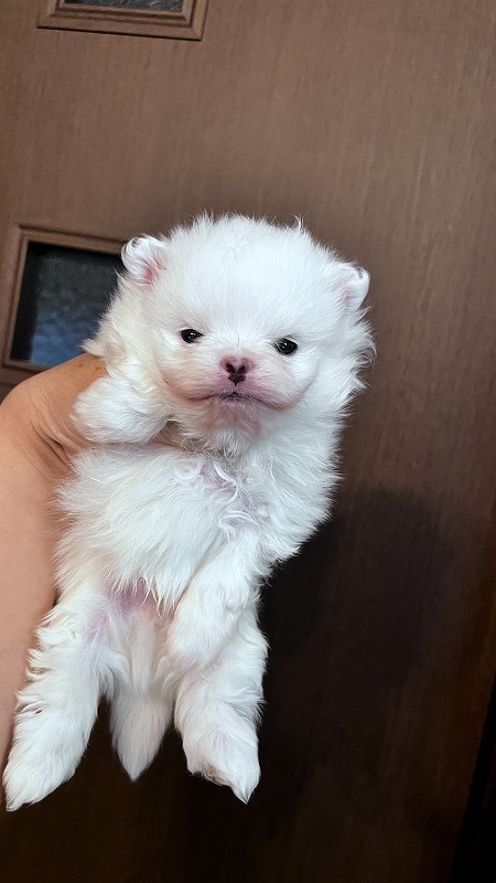 お待たせしました!優良血統、ポメラニアン、ホワイト男の子の登場です。