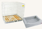 ケージの大きさは60〜90cm角ぐらいのものが一般的です。子犬のサイズと、成長後のサイズを考えながら選んでください。最初からケージに入れて子犬をならしておきましょう。しつけのためにも重要です。