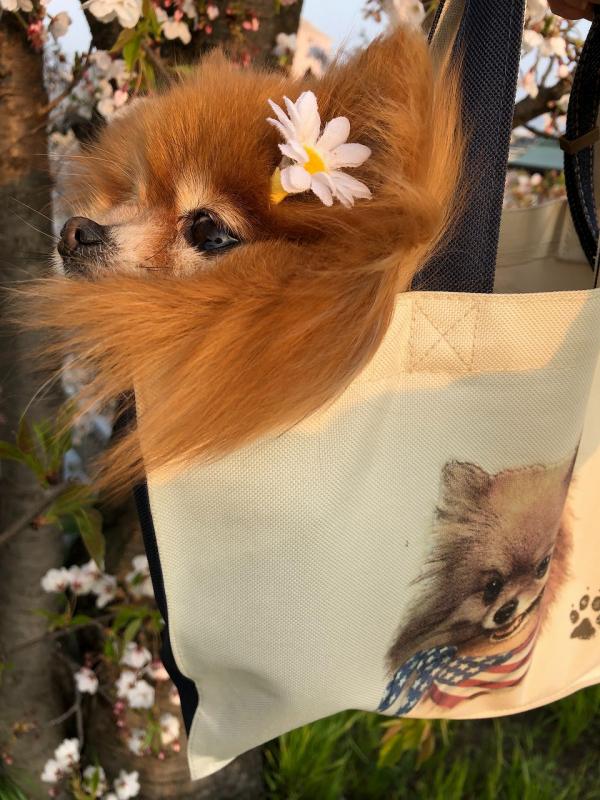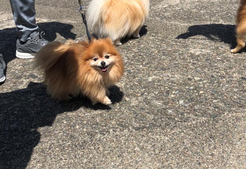 「お散歩中、蓮根の葉っぱ、くわえてます(笑)」